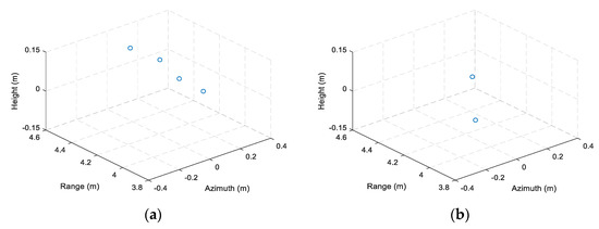 The above formulas show that the target coordinates can be calculated through Equations (6)–(8), (10) and (11). To avoid the phase wrapping, the absolute value of and should be less than π, and we can calculate that the unambiguous size of the target is: