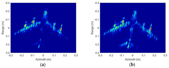 ISAR imaging results of A380 model with 20° rotation angle. (a) Antenna A; (b) Antenna B.