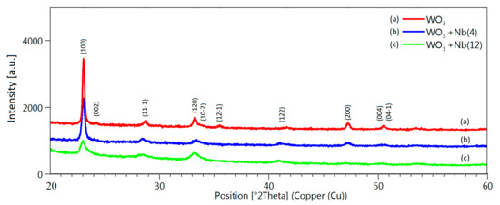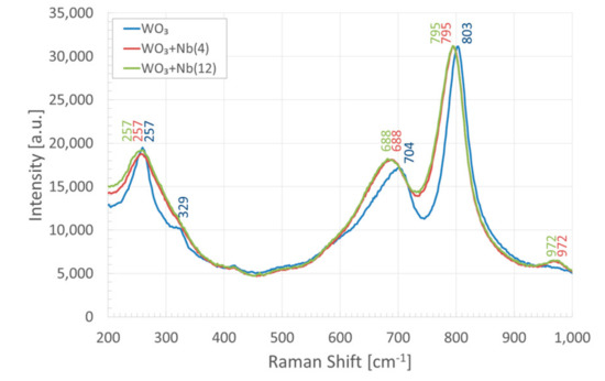 | WO3 | WO3 + Nb(4) | WO3 + Nb(12) | |