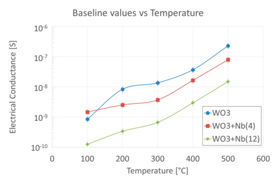 - Bai, S.; Ma, Y.; Shu, X.; Sun, J.; Feng, Y.; Luo, R.; Li, D.; Chen, A. Doping metal elements of WO3 for enhancement of NO2-sensing performance at room temperature. Ind. Eng. Chem. Res. 2017, 56, 2616–2623. [Google Scholar] [CrossRef]