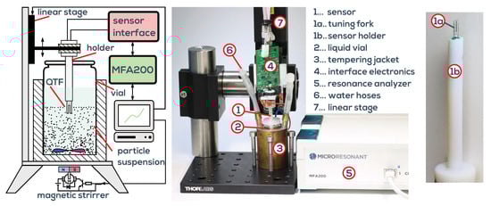 - Voglhuber-Brunnmaier, T.; Reichel, E.K.; Niedermayer, A.O.; Feichtinger, F.; Sell, J.K.; Jakoby, B. Determination of particle distributions from sedimentation measurements using a piezoelectric tuning fork sensor. Sens. Actuators Phys. 2018, 284, 266–275. [Google Scholar] [CrossRef]