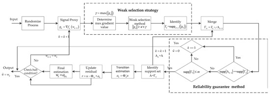 where , , and denote the candidate atomic index set, the preliminary atomic index set, and the support atomic index set, respectively.