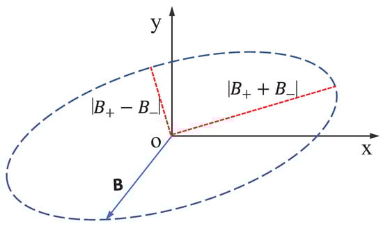 where () indicates the magnetic field strength of the () circularly-polarized field. The axial ratio can be described as the ratio of the magnitudes of the major and minor axes defined by the magnetic field vector. It can be figured out that the length of the major (minor) axis of the ellipse equals ().