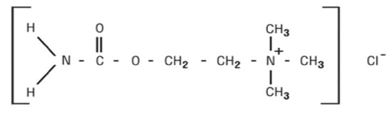 Carbachol (2-carbamoyloxyethyl(trimethyl) azanium; chloride) is a choline ester and a positively charged quaternary ammonium compound with pKa (negative log of the acid dissociation constant) equal to 15.23. It is used for glaucoma treatment or ophthalmic surgery (Figure 2) [18]. It is a potent cholinergic agent that constricts the iris and ciliary body, resulting in a reduction of intraocular pressure in patients with glaucoma. Moreover, carbachol is used in the treatment of postoperative intestinal atony and postoperative retention of urine, for which it is given by subcutaneous injection or by mouth [19]. It is also used to stop supraventricular paroxysmal tachycardia when all other measures have failed [20]. For treatment of glaucoma, the concentration and frequency of instillation of the carbachol ophthalmic solution must be adjusted to the requirements and responses of individual patients as determined by tonometric readings before and during therapy. Decreased concentrations of carbachol in an ophthalmic formulation may prevent effective decrease of intraocular pressure, which may have deleterious impact, such as iris prolapse. Also, carbachol undergoes degradation in alkaline solutions, thus producing choline, which is also a product of carbachol metabolism. Intoxications with carbachol has previously been reported in the literature [21,22,23,24]. Investigations have also found that oral intoxications with carbachol can cause nausea, sweating, hypotension, bradycardia, and severe persistent cholinergic symptoms, leading to a case of acute cardiovascular failure and, finally, fatal poisoning [25].