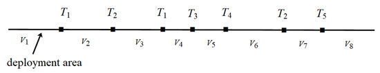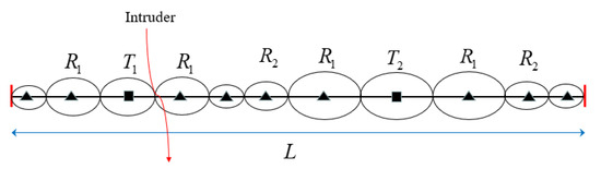 As shown in Figure 3, we construct a heterogeneous line barrier P with length L, in which it consists of two different types of transmitters T1 and T2, and nine receivers.