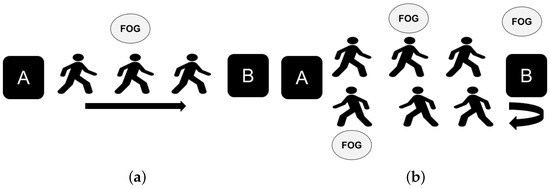 FOG is a brief episode of absence of forward progression of the feet despite the intention to walk. Patients have the impression that their feet are glued to the ground [4] and they lose control over their gait. FOG is transient and lasts from a few seconds to up to 1–2 min [4,5]. This phenomenon happens mainly during gait initiation, turning, performing dual tasks or approaching narrow spaces [6,7].