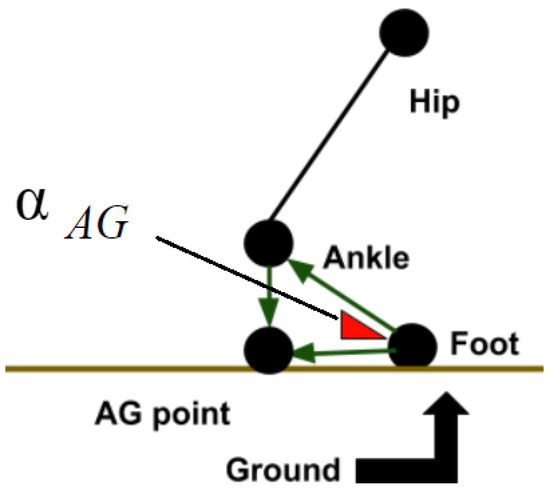 The angle between the ankle-foot joints and the foot-AG point is αAG.