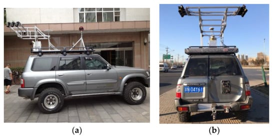 Modified mobile-mapping system. (a) Side view. (b) Back view.