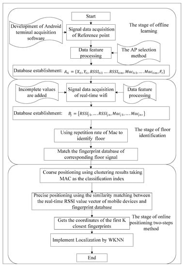 The proposed flowchart of indoor localization within multi-story buildings based on Wi-Fi.