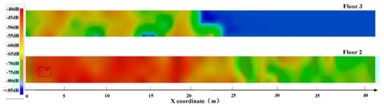 The RSSI distribution of the test AP on two different floors in which the red part indicates that the signal intensity is high.