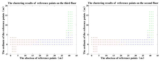 Besides the plane position of moving receivers, their floor position is necessary to locate them perfectly within multi-story buildings. Some researchers have done some work on floor identification. Deng et al. [11] proposed a WLAN indoor floor identification method based on the k-means algorithm that classifies floors according to the relationship between RSSI value and distance and takes the nearest class of subordinate floors as the final result. Alex et al. [12] proposed another method based on GSM (global system for mobile communications) fingerprint to identify the floor and studied different methods to reduce the amount of fingerprint collection effectively under the condition of ensuring a high identification accuracy rate. Li et al. [13] introduced prior information, such as an indoor environment map, to help the RSSI of WLAN to realize floor identification. Literature [14] applied WKNN (Weight K-Nearest Neighbor) and neural network respectively to floor judgment, which was also based on the RSSI. In contrast to the above, [15,16] used differential barometric altimetry to assist with floor identification and achieved a judgement rate of 98%. In addition, in order to improve the matching efficiency of online positioning, different clustering algorithms were introduced [17,18,19,20,21,22,23], such as interior geometric clustering algorithm. Some researchers considered APs (access points) as Voronoi diagram’s generators to create Voronoi cells and used these cells to cluster fingerprints of database [22,23]. After that, the location area of mobile nodes was determined by using the strongest access point, and finally used the dynamic KNN (K-nearest neighbor) algorithm to implement the fingerprint clustering algorithm.
