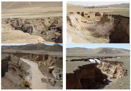 Photos of gully erosion in the Klocheh Watershed, Kurdistan province, Iran.