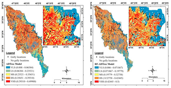 Gully erosion maps obtained by RF-ADTree model and other soft computing benchmark models.
