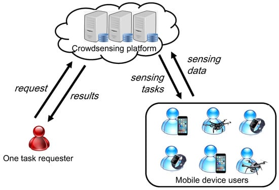 With the emergence of various wireless technologies (4/5G, DSRC, and etc.), ubiquitous terminal equipment, such as smartphones, vehicles and UAVs, can collect real-time data from the environment and transmit the data to the IoT central server effectively [1,2,3]. As an important application of IoT, crowdsensing can leverage the power of large crowds to complete the complicated sensing tasks by using their smartphones or other mobile devices [4,5]. Compared with the conventional data collection methods, crowdsensing provides a low-cost and time-efficient solution for large-scale sensing tasks. With the dramatic proliferation of mobile devices, a set of crowdsensing systems have been implemented in recent year [6,7,8,9,10,11,12,13,14,15,16,17]. For instance, Kumar Rana et al. implemented an Ear-Phone system for monitoring the environmental noise pollution in urban areas through crowdsensing data collection [18].