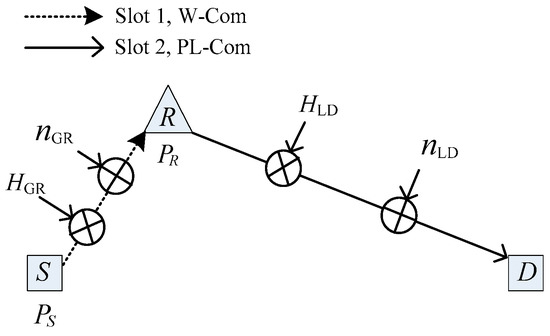 Figure 1 shows the two-slot dual-media hybrid communication system considered in this work. In the first time slot, the source (S) uses the transmit power PS to communicate wirelessly with the relay (R). In the second time slot, R amplifies and forwards the received data and transmits these to the terminal (D) through the power line by power PR.