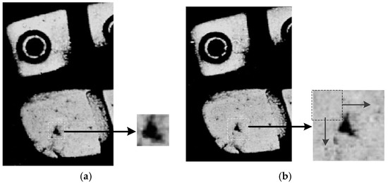Illustration of template matching method. (a) The probe patch; (b) The extension patch in the questioned shoeprint.