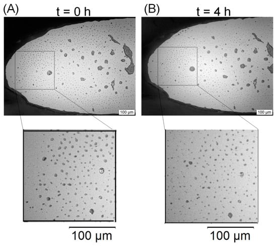 Finally, the presence of cellular growth inside the microchambers for the sucrose concentration of 30 g/L was proven with the microscope. Figure 4 shows one of the volumes of 2 × 10−5 mL chosen for cells counted at t = 0 and t = 4 h, when this test was finished.