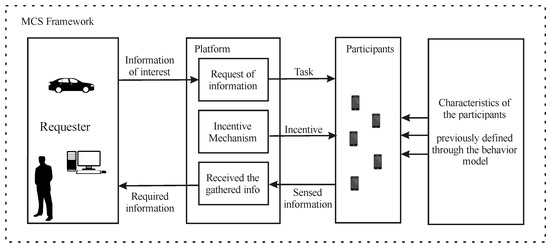 MCS enables several applications [2] and recently has been the focus of several studies [3,4,5,6,7,8] Using resources of devices that are already in the field has opened a new range of possibilities. For example, monitoring the traffic congestion of a whole city [9,10,11,12], parking solutions [13,14,15], measuring pollution levels in an urban area [16,17] and healthcare solutions [18,19]. In the near future, the industry expects to add even more sensors to the mobile devices, which will bring a vast amount of applications that will enhance the management of cities and our daily activities. Although MCS is promising, there are issues to consider. There are privacy concerns since mobile devices belong to humans and sometimes the sensory data may be personal. In addition, when a mobile user takes part in MCS consumes his own resources (e.g., computer power, battery, data plan). Therefore, there is a need to encourage users to cooperate or take part in the MCS framework through a reward system. The user cooperation relies directly on the motivation related to intrinsic and extrinsic issues. The intrinsic motivation depends on the beliefs, feelings, likes, priorities or desires. The extrinsic motivation is defined by exterior reinforcements or punishments usually translated into cash or valuations. Therefore, to design an incentive model it is important to consider that each person will have different motivations and will react differently to the different incentives offered.