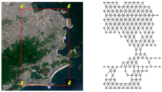 Area of interest in the city of Rio de Janeiro and its representation as a graph.