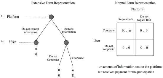 Another characteristic of our approach is that the participants of the game follow a sequence. First, the platform requests the information and forwards the payment or incentive offered, immediately after, the user knowing the request of the platform and the offered payment can decide on the participation or not considering this information. On a future occasion, the platform may need to collect information from the same user, this can happen in more than one occasion. A game that is repeated over time is better known as a repetitive game.