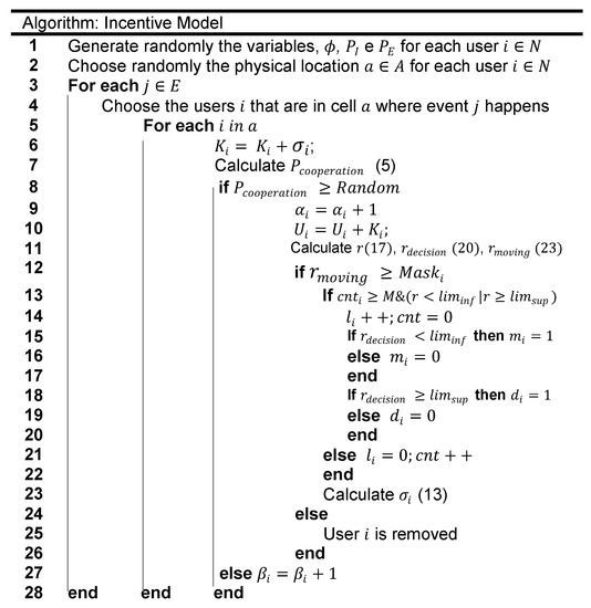 We finish this section presenting the flowchart and the pseudocode of the incentive model in Figure 10 and Figure 11 respectively.