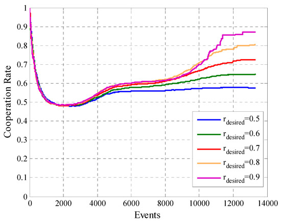 5.2. Results for Different Values of Desired Cooperation Rate with a Fixed Initial Payment
