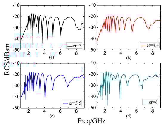 Figure 17 shows the simulation results of the designed 12-bit reference tag with coding (111111111111) on substrates with different relative dielectrics.