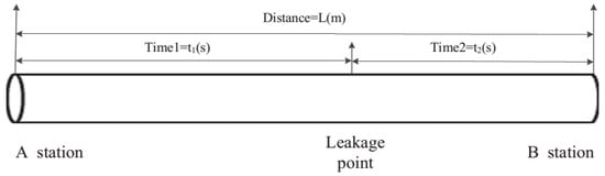The location of a unknown leakage along the pipeline between stations (sensors) A and B shown in Figure 8 is determined using mathematical models (17) and (18) []:
