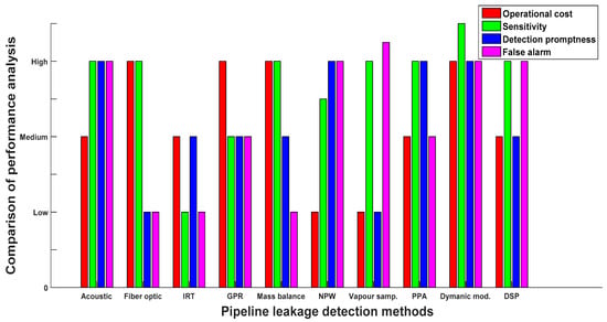 The use of IRT systems for pipeline condition monitoring enables timely detection of anomalies in the pipeline network thereby, reduced loss associated with gas wastage. Besides, the complexity of IRT system integration is not high. The major components to set up the system are a camera stand, an infrared camera and a display unit for visualisation of the acquired infrared thermal images. Moreover, the benefits of the IRT system include efficient transmission of the scan objects into a visualisation form [], fast response time, and ease of use []. The operation of such systems is so straightforward that no specially trained or experienced personnel are required for the monitoring task. IRT-based systems are suitable for any kind of pipeline size as well as various hydrocarbon fluids flowing through the pipelines []. However, the cost of a high resolution infrared camera is very expensive. Moreover, quantifying a leak orifice of less than 1.0 mm using IRT-based systems is challenging.