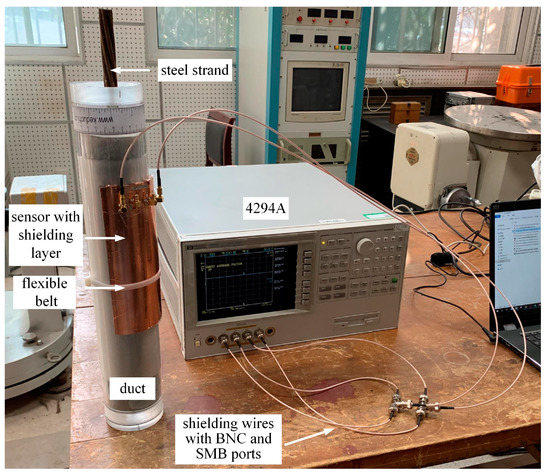 In our previous work on grouting quality evaluation, a proximity capacitive sensor was designed and used to evaluate the grouting quality of the duct. Detection principle is derived from industrial processing tomography (IPT) technique [8]. A new method based on the Q-factor was presented to identify the boundary position of the three-phase layer [9]. Previous studies used simplified conditions, and the presence of steel strands was not considered. However, state detection of steel strands is another important factor for structure safety evaluation.