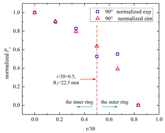 The normalized Pc of the experiment and simulation.