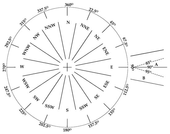 Figure 3 is a sixteen wind direction map that is introduced to paper as a virtual map heading. There are 16 equal direction intervals. Each interval is 22.5 degrees. The center direction of each interval is adopt as the moving heading of a pedestrian. That is to say, when a person walks indoors, there are 16 possible directions.