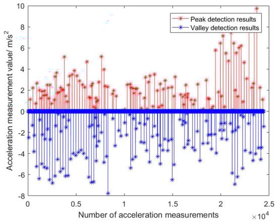 Detection results of Peak and Valley of pedestrian motion acceleration wave.