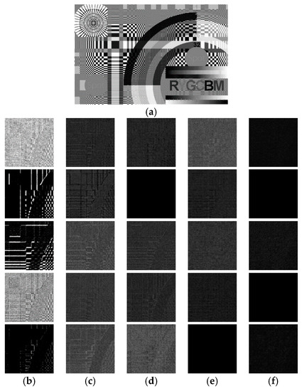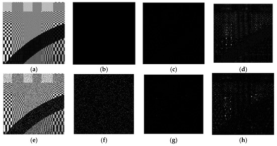 During the processing of image features, pixel correlation within the image, which is also known as intra-view correlation, plays an important role in assisting the network to identify the image structures from the noise components. This correlation is also the foundation of most existing denoising algorithms. To further justify this claim, clean images without noise are sent into the network for testing. Theoretically, if the input images contain no noise, the estimated residual image should be all zeros. However, in reality, image components with very high frequency could demonstrate a bit of noise-like behavior due to the lack of sufficient pixel correlations within the neighborhood. This would lead to estimation errors in high-frequency regions. An example is shown in Figure 5a–d with regions of particularly high frequency being zoomed for inspection. Though hardly perceived by human eyes, estimation errors can be still observed in these high-frequency regions after rescaling the intensity.