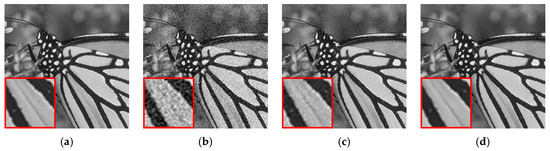 - Buades, A.; Coll, B.; Morel, J.M. A non-local algorithm for image denoising. In Proceedings of the 2005 IEEE Computer Society Conference on Computer Vision and Pattern Recognition, San Diego, CA, USA, 20–25 June 2005; Volume 2, pp. 60–65. [Google Scholar]