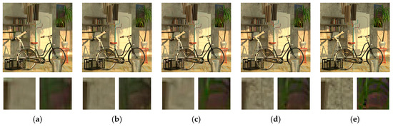 Color image denoising performance on “Bicycle” dataset with noise level σ = 25. (a) CBM3D [59]; (b) CDnCNN [28]; (c) CVBM3D [59]; (d) MVCNN-C; (e) Ground truth.