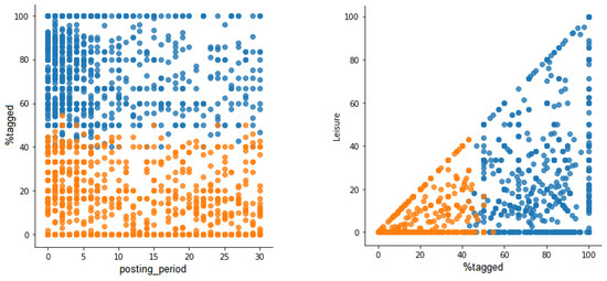 Geo-located messages or photographs is a very common data source for studying tourist behaviour. The underlying question in this context is how to distinguish posts sent by tourists from those sent by locals. The identification of tourists is an issue for which unreliable approximation yet exists. The simplest criterion is to apply the period during which the user has posted messages as in [13,36], where the photographs are attributed to residents if the period of posting exceeds (typically) one week, and to visitors otherwise. The identification of visitor’s origin can also be done through their self-reported locations, using the number of attraction visitations as a pattern to discern between different profiles of attraction visitors [37]. A more sophisticated criterion is to use the names of countries where tweets have been posted. In [38], people who posted tweets in chronological order of Foreign Country A, Japan, Foreign Country A are considered to be foreign tourists; additionally, when the distance between the inferred home place and the destination of an individual is less than 100 km, the individual is not considered to be a tourist. Ultimately, the identification of individuals as tourists via their posted messages should be taken on the basis of various factors.