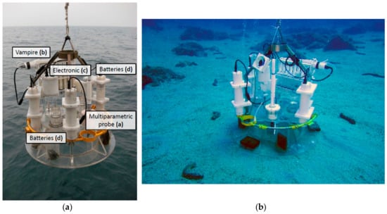 A variety of devices have been developed to study benthic-pelagic coupling processes. In the past few decades, benthic landers with different setups have been developed for a wide range of purposes and their technological features and models have extensively been reviewed [14,15,16,17,18,19,20,21,22]. Benthic landers are equipped with diverse sensors and devices according to the tasks they are deployed to perform, including microprofilers, planar optodes, and digital cameras to study sediment-water interface properties; eddy correlation systems to measure the fluxes of dissolved chemical species in extensive areas; video cameras to investigate the deep sea biota; and oceanographic sensors (O2, pH, redox potential (Eh or ORP), optical turbidity, CTD, current meters, sediment traps) to study the water column [8,9,23,24,25,26,27,28]. In the past few years, other and much more complex and expensive devices have also been developed, such as landers for hadal environments [29,30,31,32,33], for multipurpose uses, and for transporting other mobile devices [34,35,36,37].