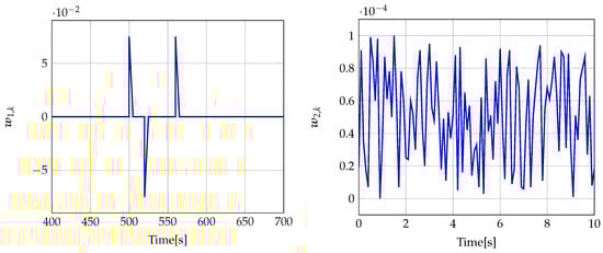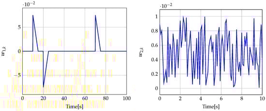 Disturbance signal (left) (for ) and measurement noise signal (right) (for ).