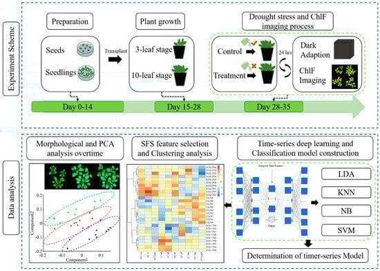 - Yao, J.; Sun, D.; Cen, H.; Xu, H.; Weng, H.; Yuan, F.; He, Y. Phenotyping of Arabidopsis drought stress response using kinetic chlorophyll fluorescence and multicolor fluorescence imaging. Front. Plant Sci. 2018, 9, 603. [Google Scholar] [CrossRef] [PubMed]