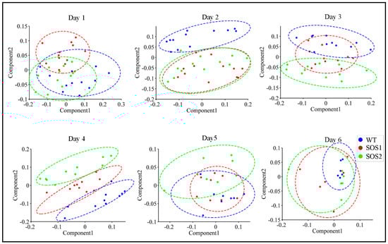 3.2. PCA with All ChlF Parameters and Kinetic ChlF Curves Captured Responses of sos Mutants to Drought Stress Over Time