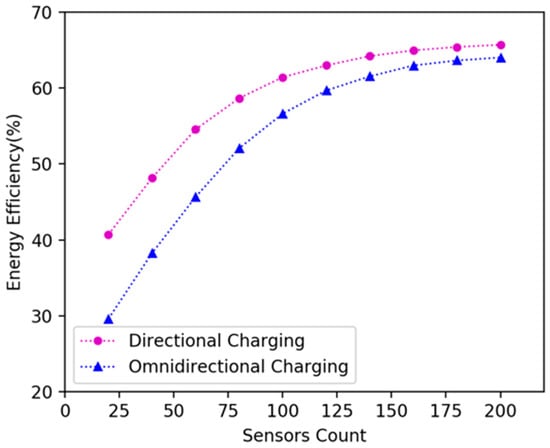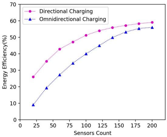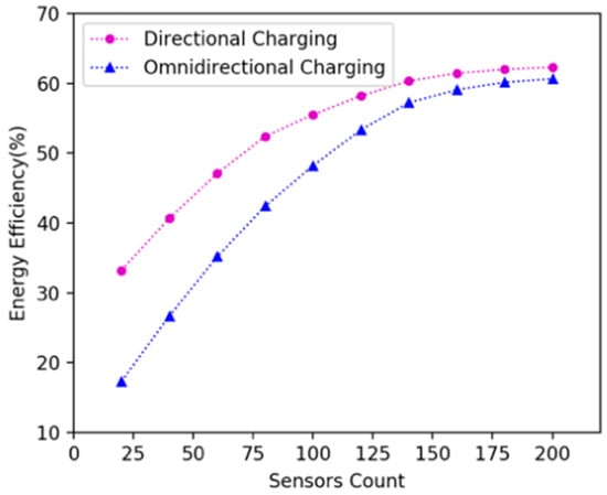 Energy efficiency of the DCV and omnidirectional charging vehicle in 20 × 20 m2 area.