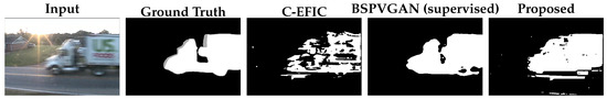 It should be noted that is still possible to improve segmentation results for background subtraction-based methods in general by also taking semantic information into account, as was demonstrated by Braham et al. [41]. This should yield a more accurate segmentation of typical foreground objects, such as pedestrians, bicycles, and cars. Finally, the segmentation masks resulting from unsupervised methods can still serve as initializations to high-performing semi-supervised methods, as was noted by Wehrwein and Szeliski [8]. The foreground mask of the proposed method could replace the (otherwise necessary) manually annotated masks, potentially leading to a similar performance if the selected foreground masks are accurate.