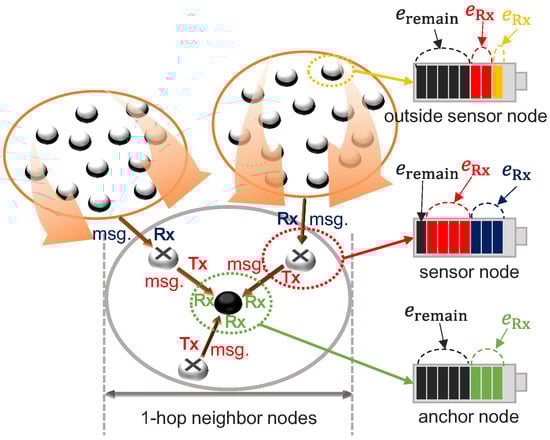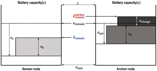 In this scheme, nodes whose energy is neither insufficient nor excessive are selected as anchor nodes by considering Equations (6) and (7). The detailed anchor selection process is described in Section 3.4.