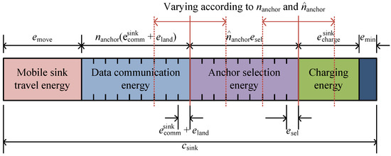 where is the energy transfer efficiency. In the proposed scheme, because the size of the network does not change and the sensor nodes periodically collect the same amount of data, the number of anchor nodes does not change drastically. Therefore, with essentially equal to , and the minimum value of is , Equation (9) can be rewritten as follows: