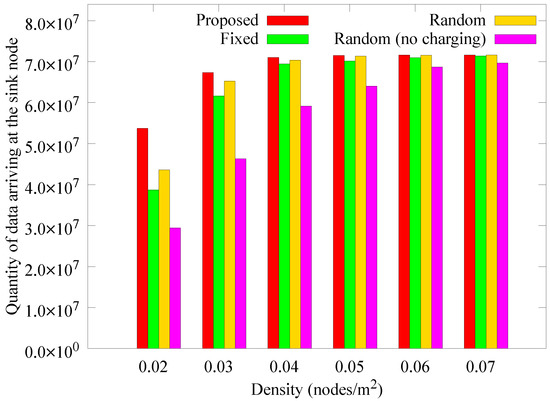 Comparison of the quantity of data collected at the mobile sink node according to the density.