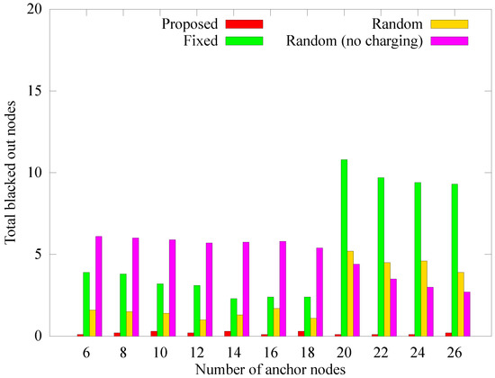 Comparison of the number of blackout nodes according to the number of anchor nodes.