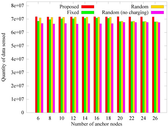 Comparison of the quantity of data sensed according to the number of anchor nodes.
