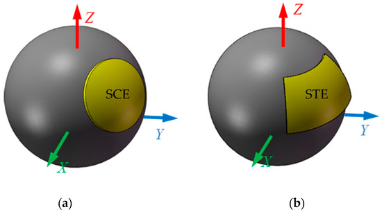 Simulation model of spherical capacitive plate (a) SCE: spherical-cap plate (b) STE: spherically-trapezoid plate.