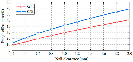 Effect of null clearance on the capacitance errors caused by capacitive fringe effect.